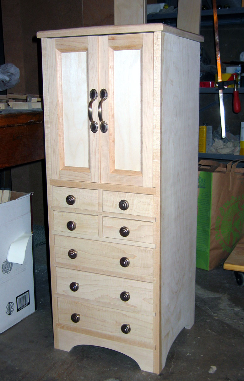 Project 4 Doll Ward-robe and ChestDesigned by West Mildenhall Maple facing on Baltic Birch plywood June-July 2004 |